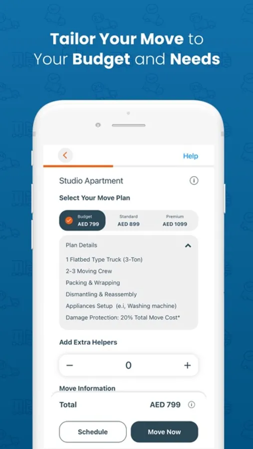 Experience stress-free moving with HurryApp. We understand that moving can be a hassle, that's why we have crafted a seamless and budget-friendly moving service right at your fingertips. No hidden fees, just transparent 'Budget-Standard-Premium' pricing - you have control over your moving expenses.