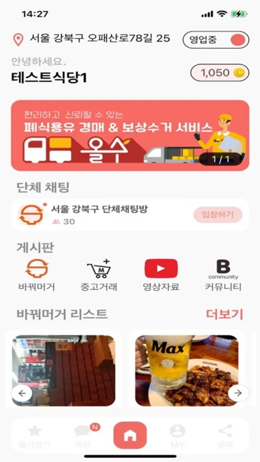 사장님끼리 서로 바꿔먹는 어플리케이션!!