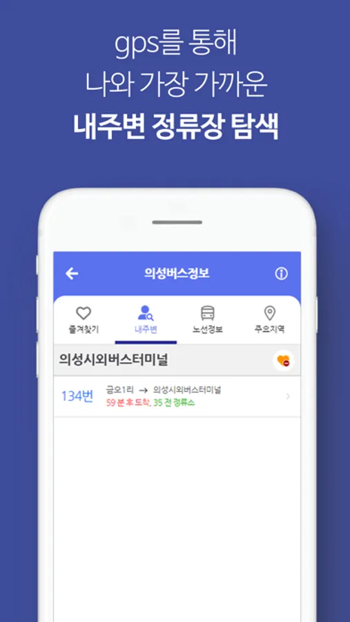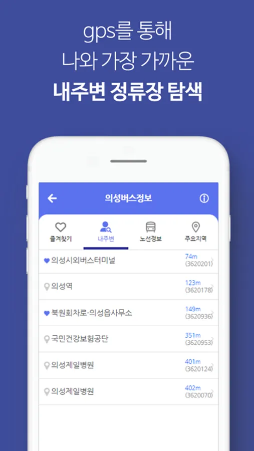 GPS 기반으로 사용자 위치에서 가장 가까운 정류장 표시 및 정류장 거리 표시