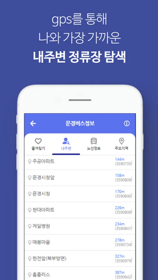 GPS 기반으로 사용자 위치에서 가장 가까운 정류장 표시 및 정류장 거리 표시
