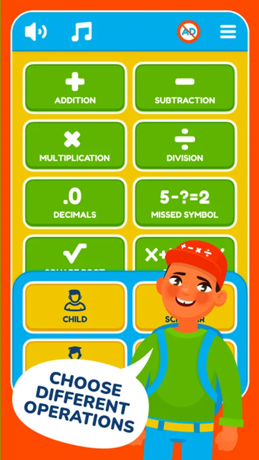 Choose your difficulty level for mathematics and select a math game from many categories: