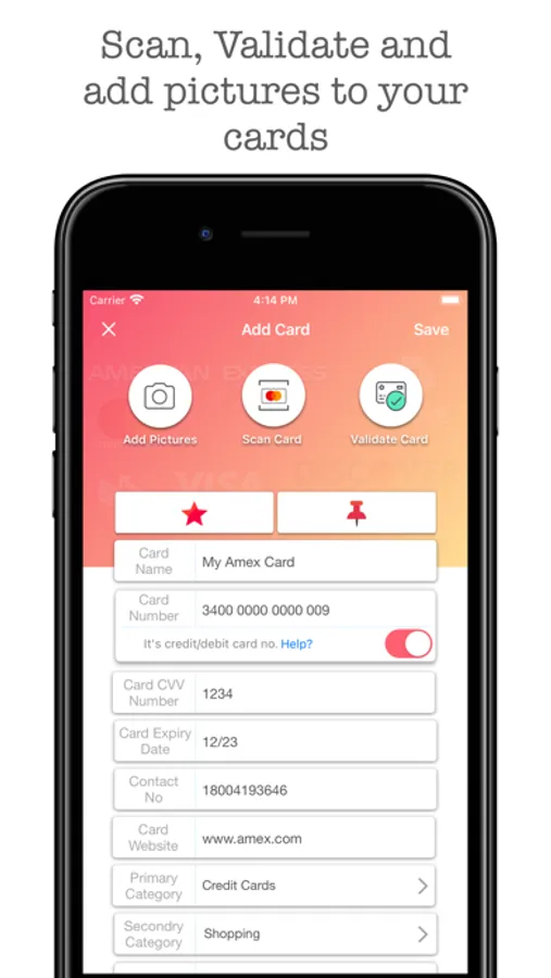 * Scan your Credit and Debit Cards using PayPal scanner to get the card number, card picture, card expiry, card cvv code and card holder name. So no way you get the card number get wrong