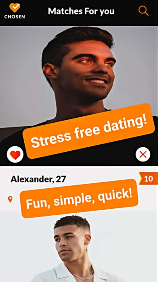 Chosen is the brand new dating app with real profiles and quality matches. App features photo verification at registration to deter bots and fake profiles, combined with search filters that actually work.