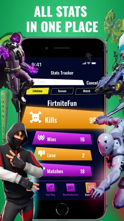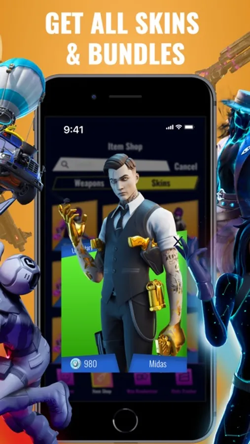 Tracker & Skins from Fortnite DISCLAIMER: This is an unofficial application for Fortnite. This application is not affiliated in any way with Epic Games. The Fortnite Name, the Fortnite Brand and the Fortnite Assets are all property of Epic Games or their respectful owner. All rights reserved. In accordance with https://www.epicgames.com/site/en-US/tos?lang=en-US