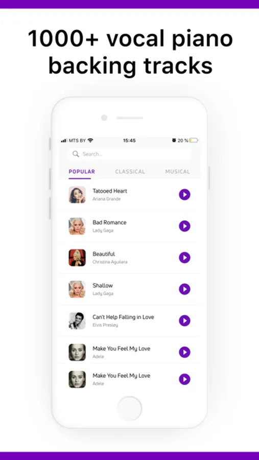 Over 1000 piano accompaniments, from classical, musical theatre to modern popular music, recorded by professional pianists.