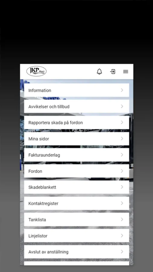 I appen för JKP Åkeri kan du som behörig ta del av en förenklad arbetsdag genom b.la. olika digitala dokument och checklistor. Du kan även ta del av informationsflöde, blanketter, kontaktuppgifter och mycket mer.