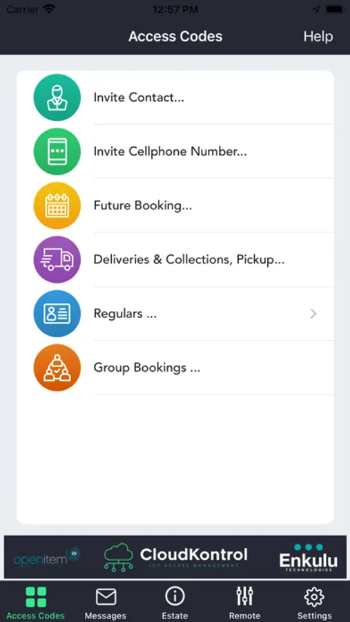 CloudKontrol provides registered users with the functionality to invite visitors using their contacts on their phone. The app provides the functionality to send invitations via SMS, iMessage or WhatsApp.
