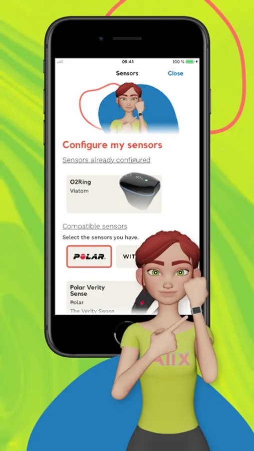 Alix connects very simply to different biometric sensors: ring, bracelet, watch, mattress, t-shirt, bra to adapt each physical activity session to your current needs. All the integrated sensors are certified for each health objective: sleep, weight, fit, breathing and TMS and allow you to fully monitor your training.