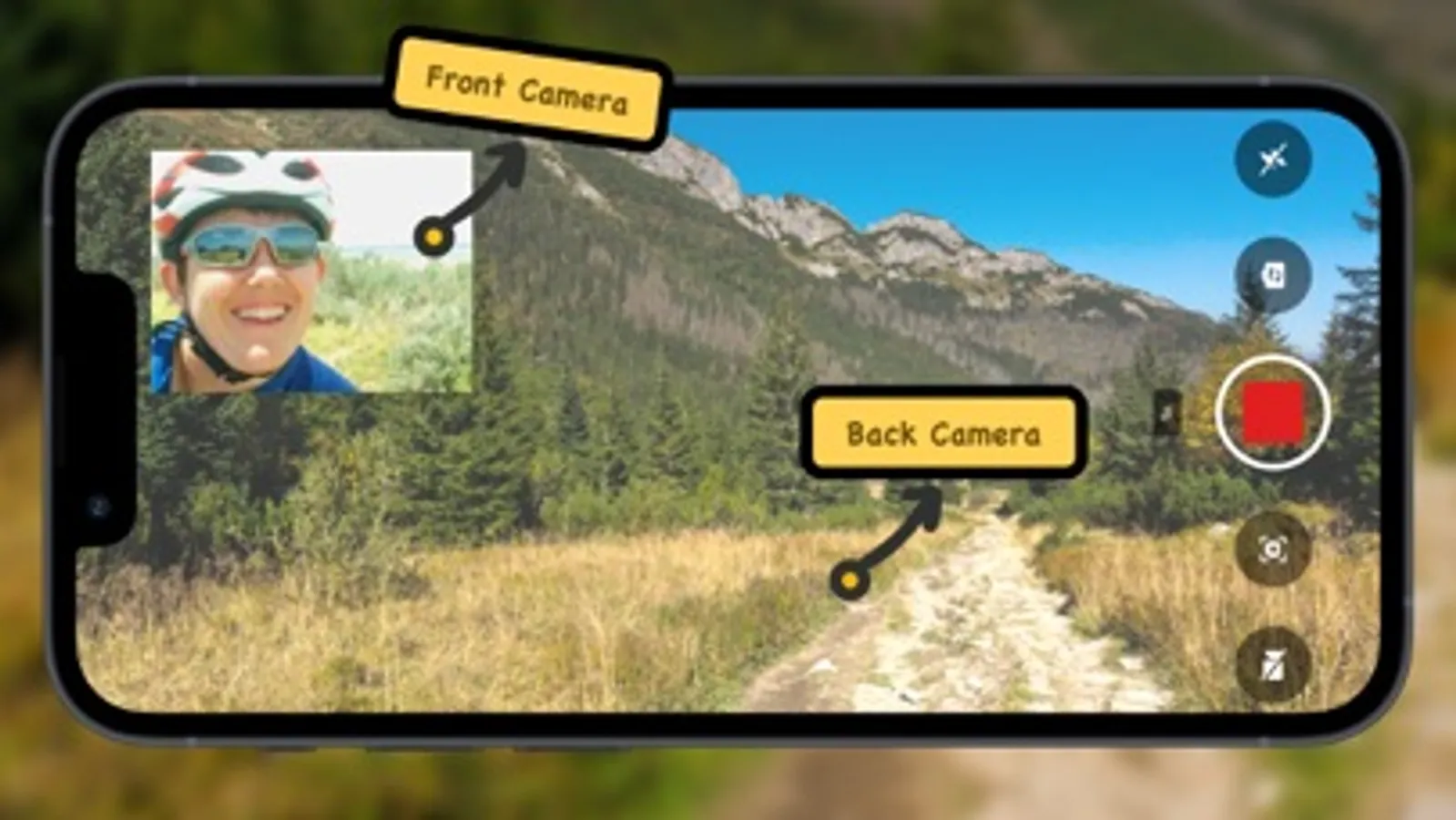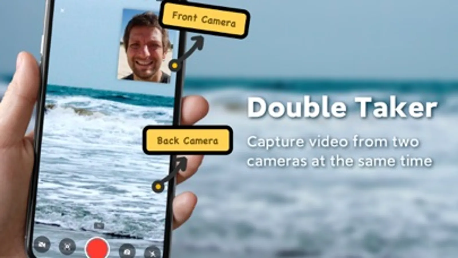Double Taker supports double cameras with front and back to take photos or video in the meantime.
