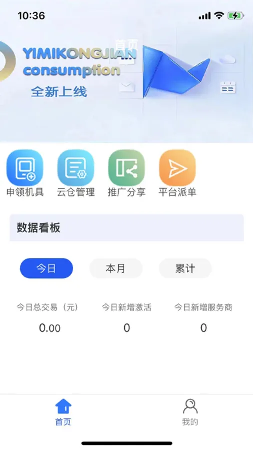 易米空间是一款线下交易,线上查看数据,申领了机具之后,平台给你发送物品,分享好友注册,领取设备的App