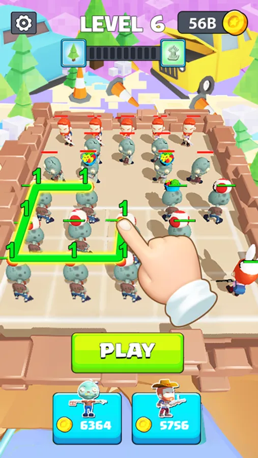 Your mission is to assemble the strongest fighting army by merging the zombies into a monster of enormous strength and defeating the opponent. Your team will increase significantly when you buy more zombies and arrange them into the most intelligent formation.