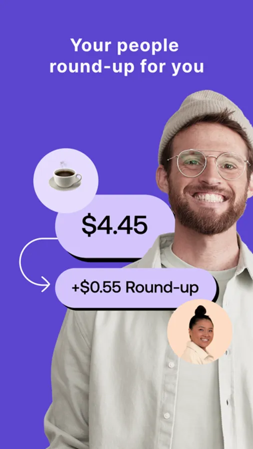 Now people who want to support you have a new way, with effortless auto-roundups on their everyday purchases. Imagine if everyone who wanted to support your wedding, your student debt goals, your future travel was able to without hurting their liquid cash in the process.