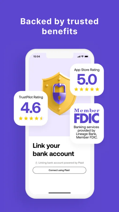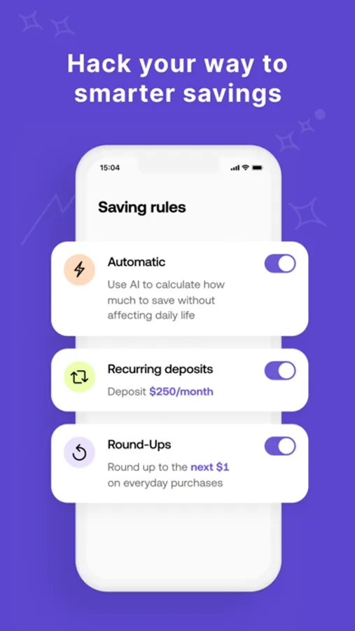 2. Link your bank accounts and create your first goal. Set up automated deposit rules like round-ups, life events, and one-time deposits.