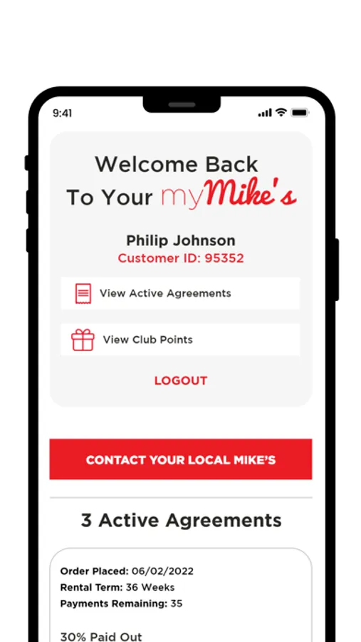 The Mikes Rent To Own mobile app allows customers to manage their account , Shop products, Receive discounts, and contact support