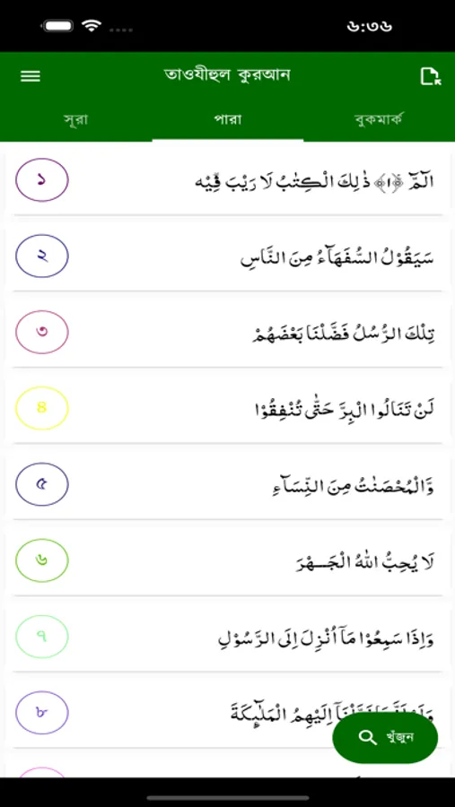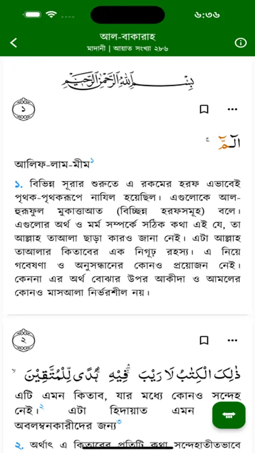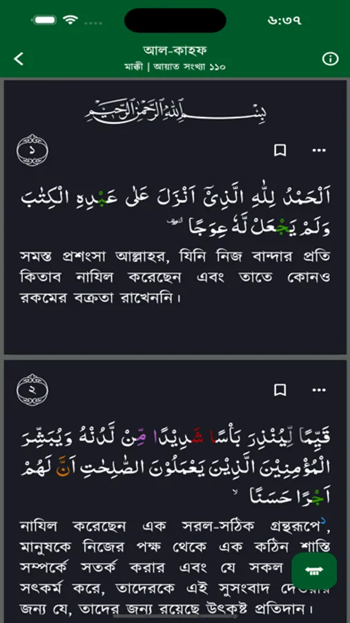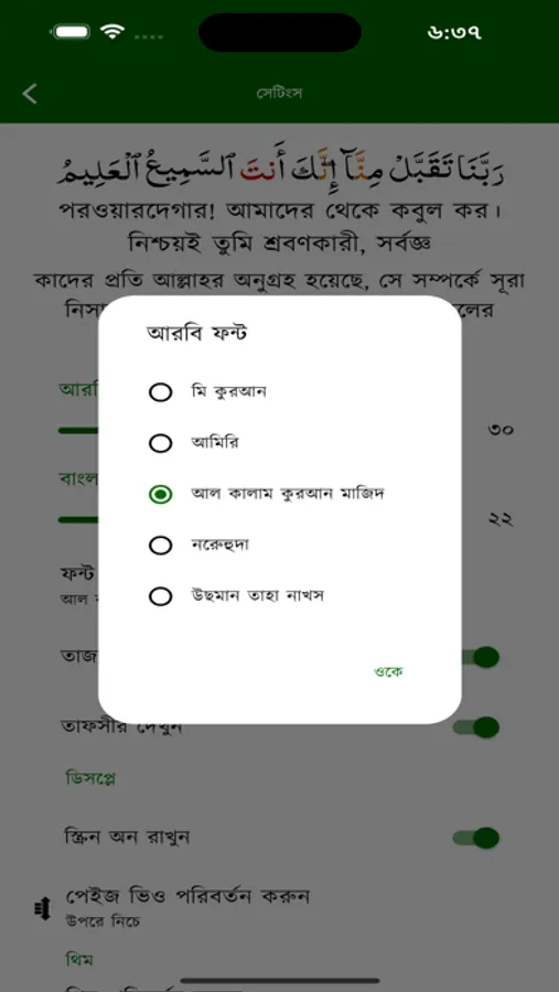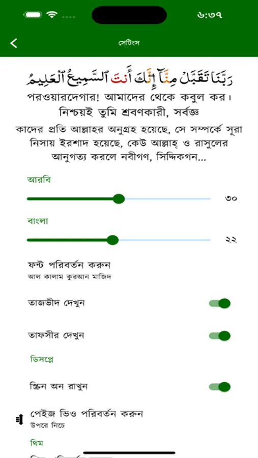 7. Font size of Arabic verses, Bengali translation and Tafsir according to your choice.
