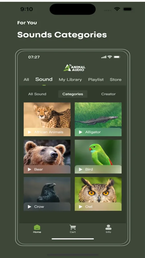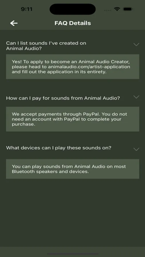 Animal Audio is an animal sound marketplace where a number of sounds are available. After you download sounds, you can add them to customized playlists and play the sequence of sounds over your electronic game callers or any other Bluetooth speaker or device.