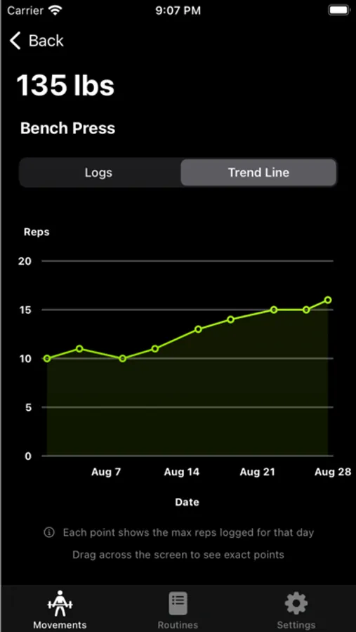 • Stay motivated by tracking your rep count progress through trend graphs.
