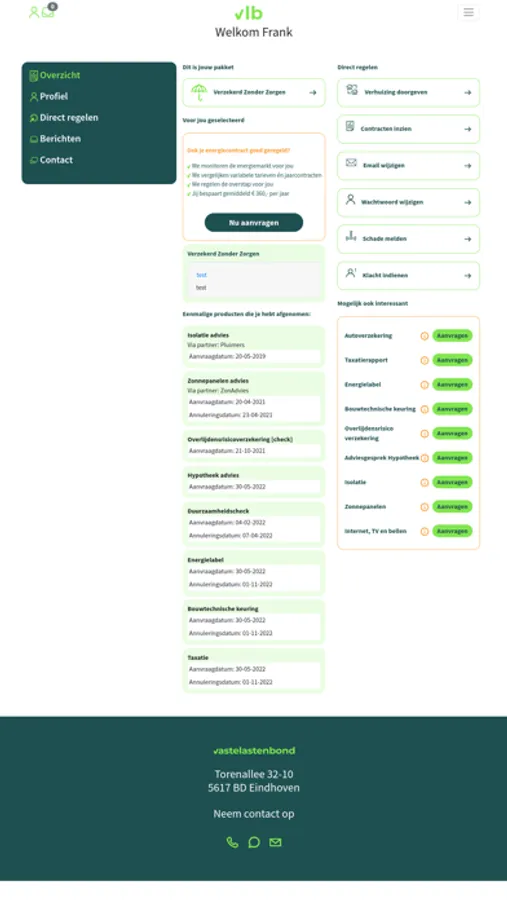 MijnVLB brengt al je vaste lasten die je bij de Vastelastenbond hebt lopen samen. Vind je polisvoorwaarden, looptijd en dekking direct terug in één overzichtelijke applicatie. Deze app geeft je direct inzicht in je vaste lasten zoals je verzekeringen en energiecontract. Je kunt ook eenvoudig en snel informatie aanvragen of contact met ons opnemen via MijnVLB.