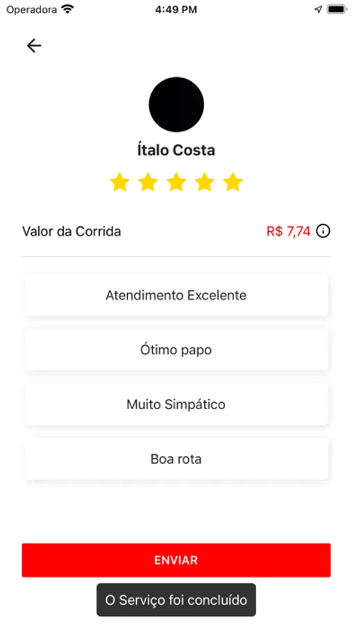 Após cada viagem, você pode enviar uma avaliação com comentários. Também é possível usar o app para dar um valor extra ao seu motorista como agradecimento pela boa experiência.