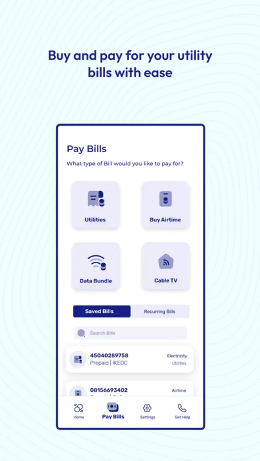 - Bills: Users can purchase bills and settle utilities right from their app from our range of bills at very cheap and affordable rates.