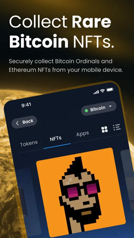 Our app boasts a simple and intuitive interface that allows you to manage your digital assets, send and receive tokens & collectibles on both the Bitcoin and Ethereum networks, and monitor the market in real-time. Here are some of the other features that make Earth Wallet the best choice for your digital asset storage needs:
