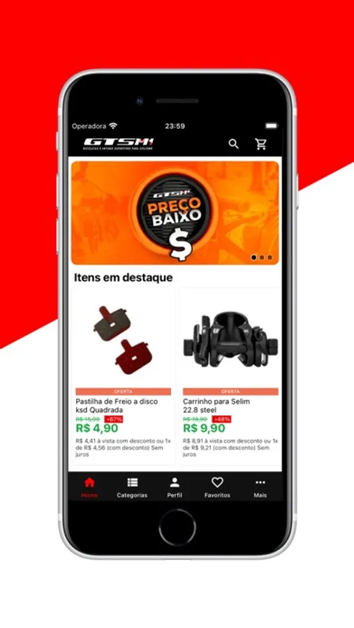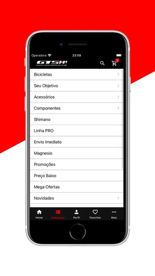 O App da GTSM1 foi pensado para entregar facilidades e descontos especialmente para que você adquira a sua nova bicicleta e artigos para ciclismo esportivo e de lazer. Tudo isso contando com ofertas de preços e descontos diferenciados, além de parcelamento em até 12x, coisa que só quem tem mais de 28 anos de experiência no mercado nacional de bicicletas pode oferecer.