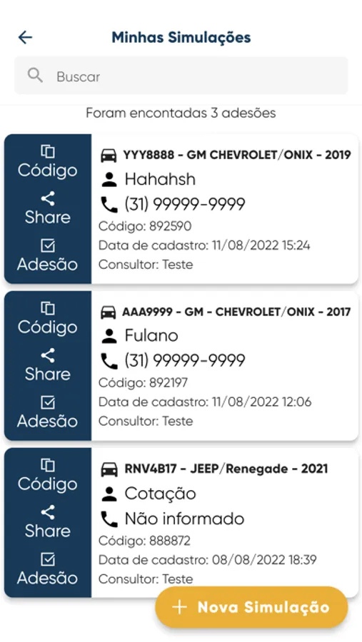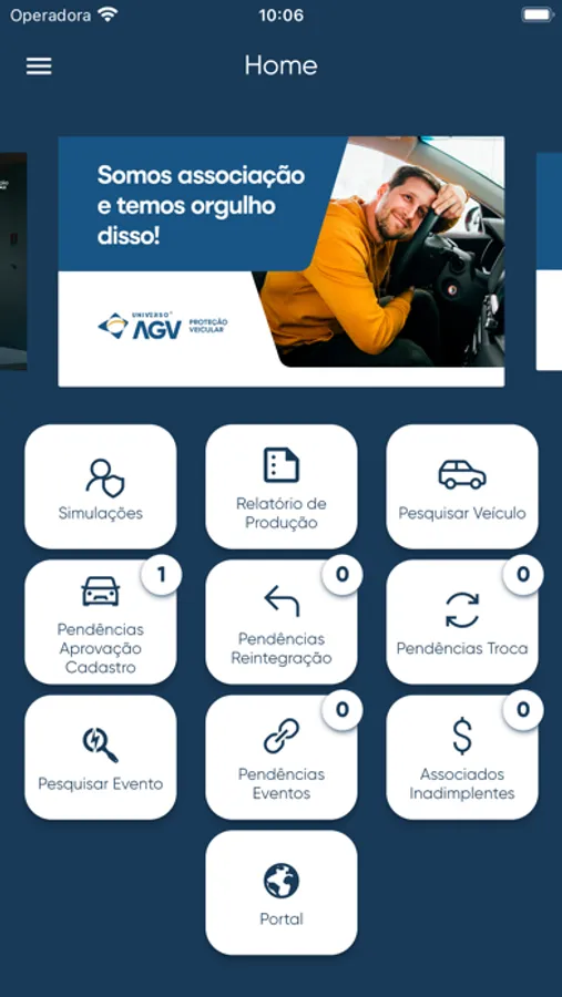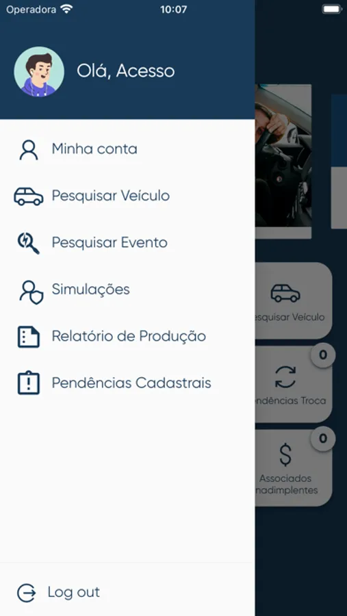Você pode fazer simulações, adesão, pesquisa de veículos, pesquisa de eventos, ver pendências cadastrais e muito mais.