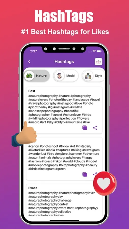 With GBInsta : Story Post DP Maker you can create awesome Insta account & profile with stylish font, make effective post with caption for Instagram and Increase likes and IG followers using Hashtags for Instagram.