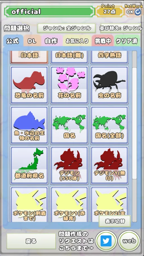 問題は随時追加され、Twitter にてリクエストも受け付けています。