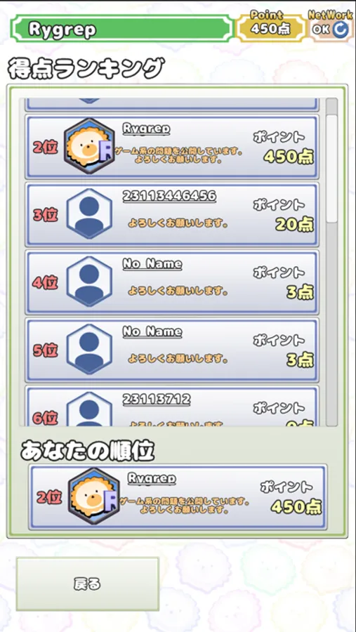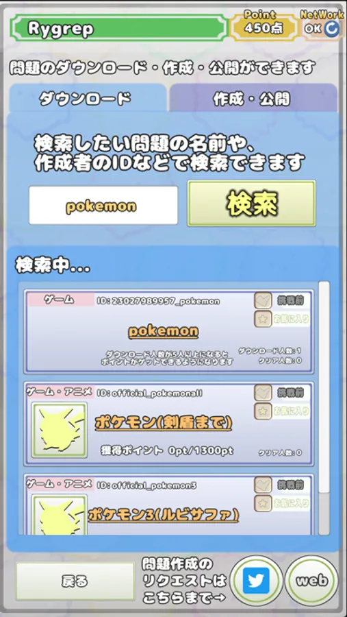 また、自分が作った問題がダウンロードされるたびゲームポイントが獲得できます。