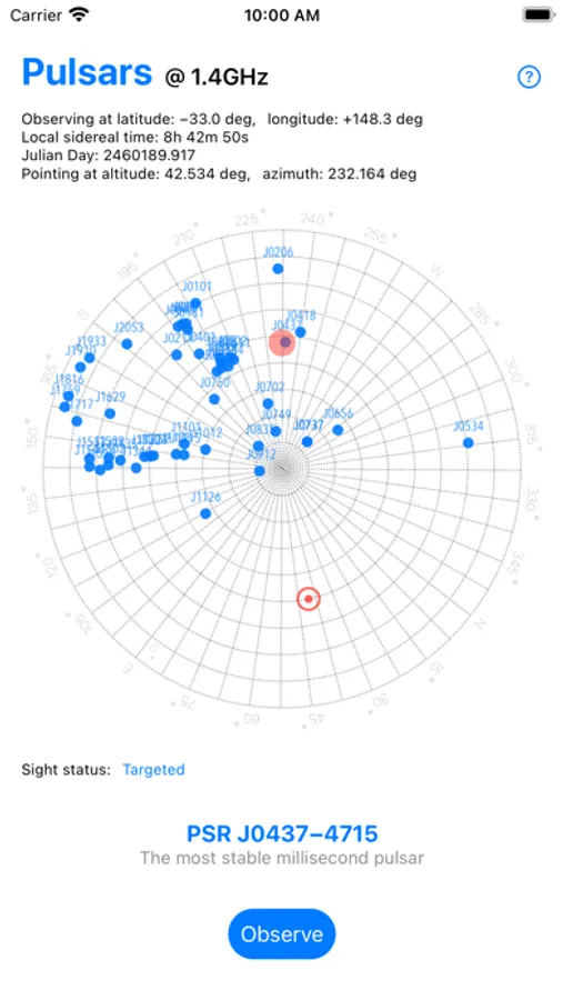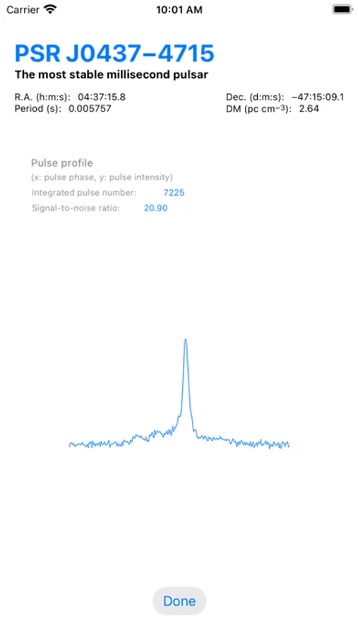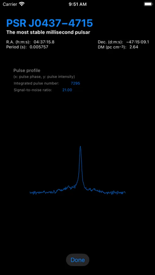 The Radio Pulsars app simulates your iPhone observing pulsars as a radio telescope. With it, you first experience real pulsar observations.