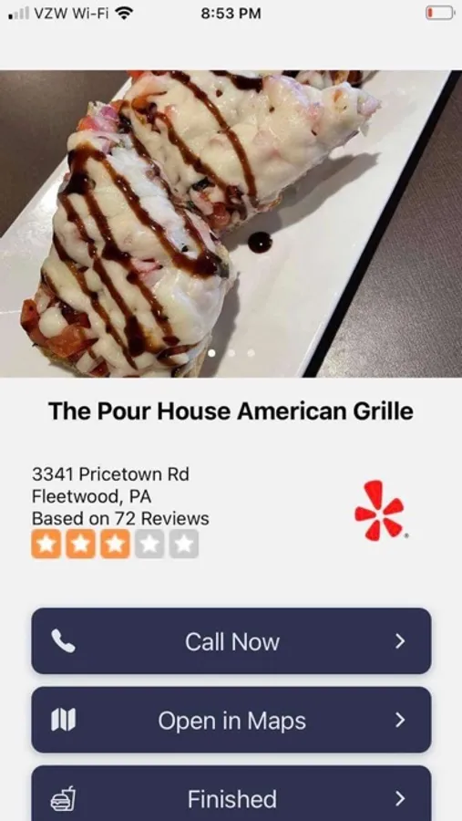 1. Tap on the Yelp symbol to be taken directly to the Yelp page of that restaurant!