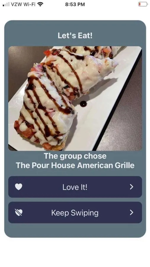2. Swipe on the Restaurant, or Tap on the Like or Dislike button to choose and remove Restaurants!