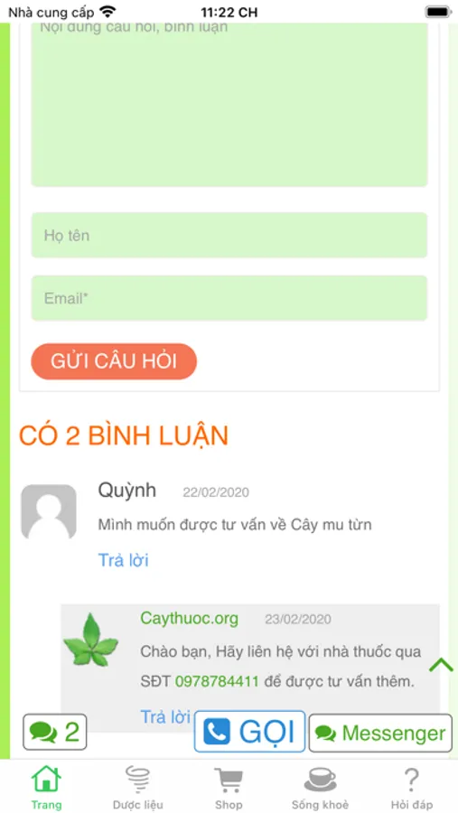 - Bình luận và đặt câu hỏi về vị thuốc hoặc bài thuốc đang quan tâm.