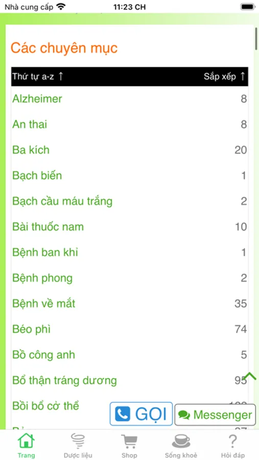 - Lọc các vị thuốc thông qua các loại bệnh.