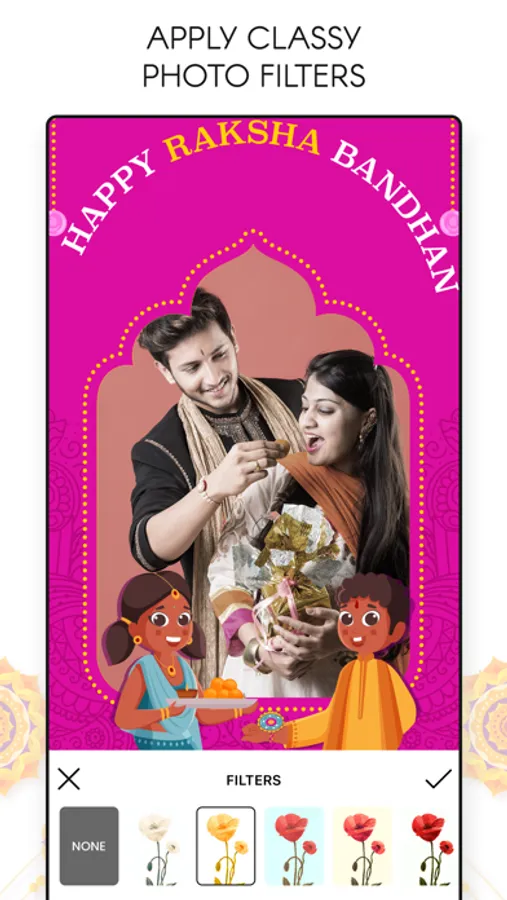 Raksha Bandhan Frames & Wishes app has the best and most beautiful frames for your photos. Take the best Raksha Bandhan Photo Frames and decorate your images with the most beautiful special effects.