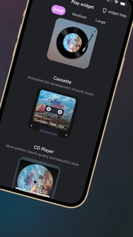 List Music has prepared for you a variety of scene playlists (Lofi, Rock, anime, study...),Immersive playback experience, as well as cool desktop playback widgets (vinyl, tape, CD player...), the widget shows historical music player,Take you to experience the collision of retro and modern, convenient playback method, add the classic style components of the player to the mobile phone desktop, and feel the retro music atmosphere.
