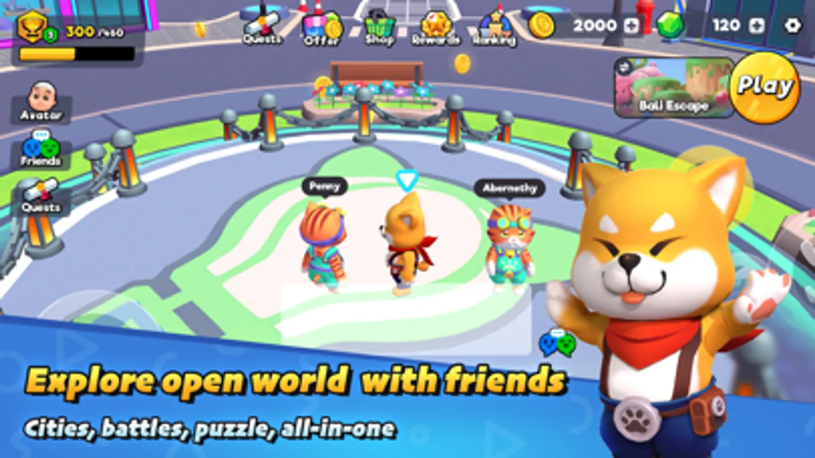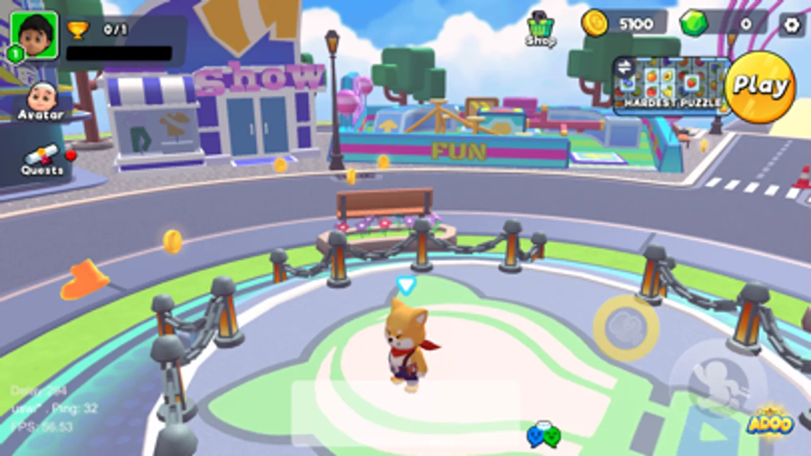 Open world mobile gaming experiences. Players can solve puzzles, battle royales and explore cities. Explore Adoo, a cool city with giant robots, fun parks, hot air balloons and cute stores. Go collect coins and unlock cute characters, fashionable accessories and cool weapons