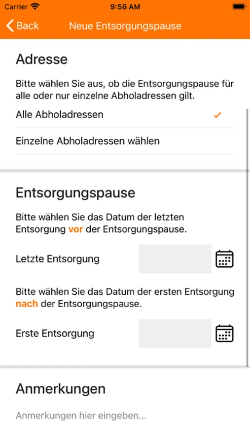 - Benachrichtigungen erhalten für bevorstehende oder umgeplante Entsorgungen