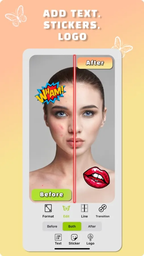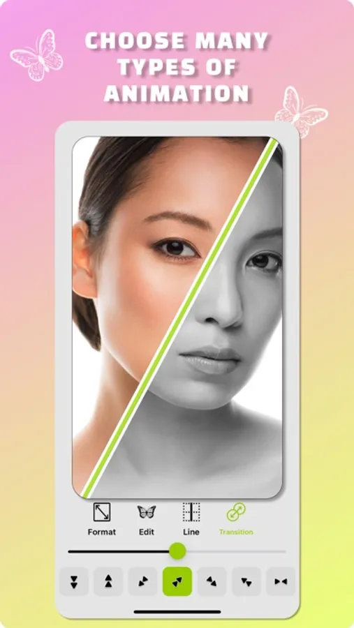 Create "Before and After" video from two photos. Select 2 photos from gallery, resize and customize transition animations. Download the finished video to the gallery or immediately share it with your friends.