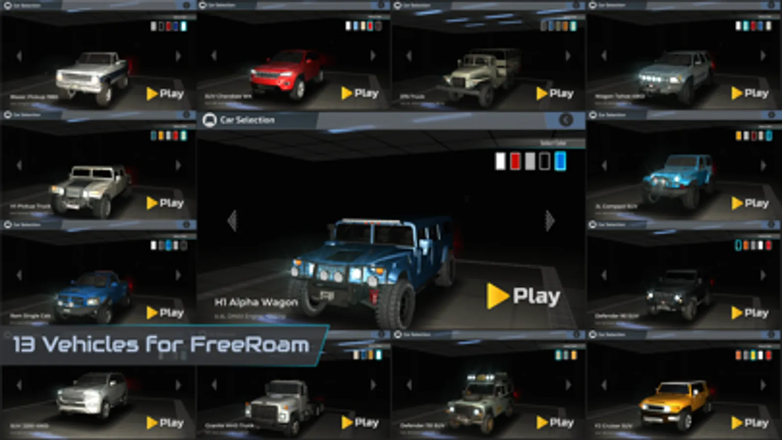 • 13 different Offroad vehicles with realistic Suspension and Offroad features