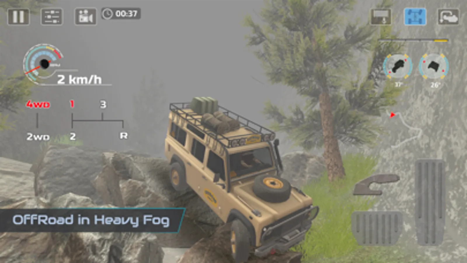 Graphics Quality and 4x4 OffRoad features and Suspension are improved for real Off-Road experience. You can use different techniques like put the vehicle in 1st Gear to tackle steep slopes or obstacles, engage Differential-Lock if one of the wheel lose traction, use Winch if your vehicle get stuck. In OffRoad Drive Pro you can enable FOG and increase or decrease its intensity from Settings menu in FreeRoam mode.