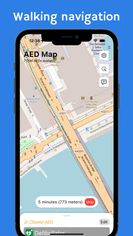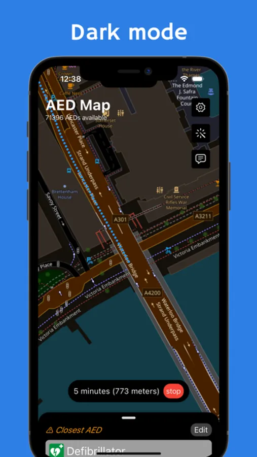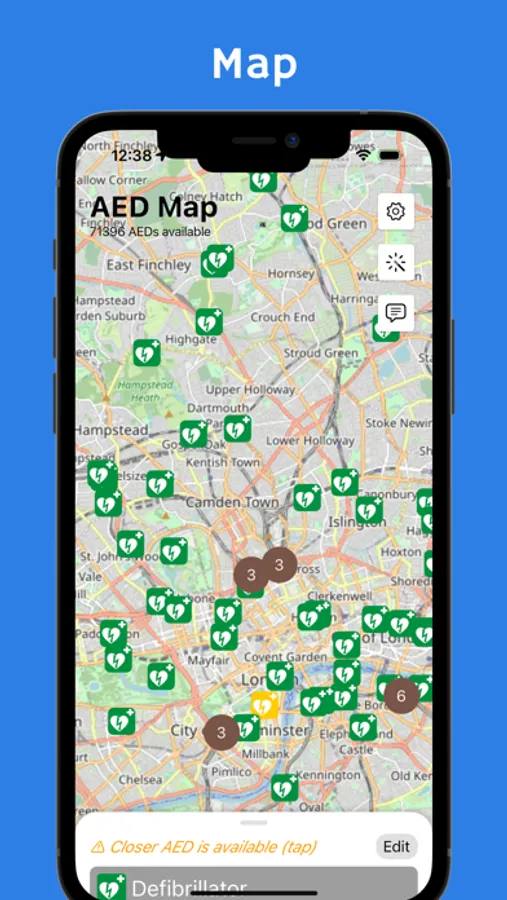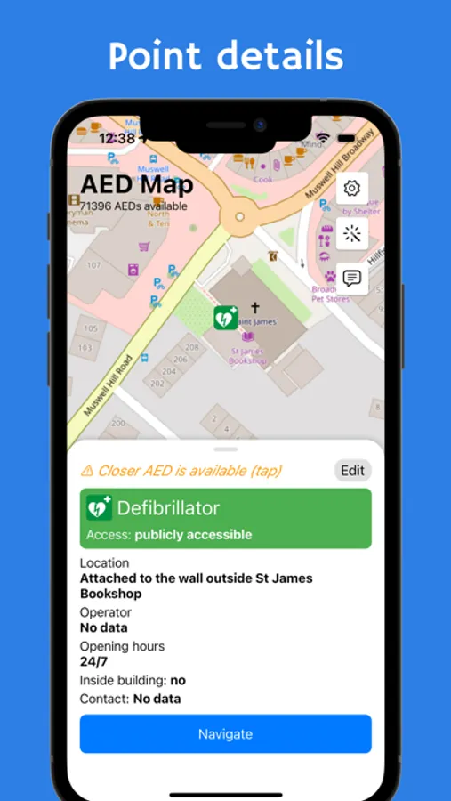 The application allows to display available AEDs (automated external defibrillators) on a map.