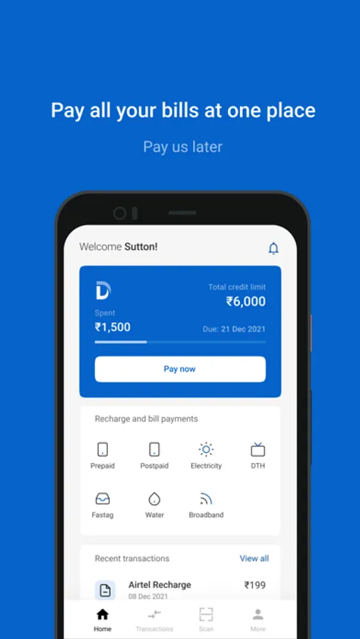Dakshin Pay gives you a zero-interest mini limit that can be instantly used for buying your daily essentials. Point, scan & shop at any merchant store in India! Buy food,