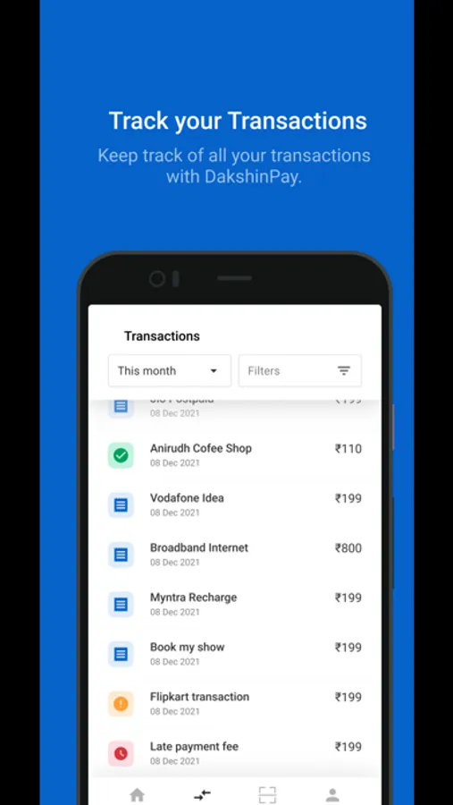 Catching up with friends, but no change to pay for tea? Just scan & pay your simple bills using Dakshin Pay Scan Now Pay Later scanner app for merchant UPI IDs. Instead of digging through your wallet or purse to find spare change, just Dakshin Pay it!