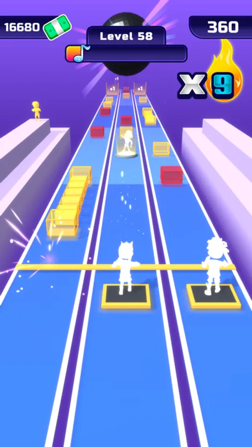 Slide your dancers left & right - and tap to make them split to grab extra difficult notes!