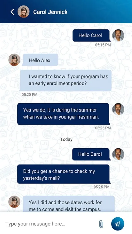 With Routree, students and admission counselors get to develop those important key relationships before the application process by both parties simply accepting an invite when a match is made on the app. At that point, both parties will know they have connected with someone who wants to build a relationship that could lead to the next level, the application process. Students can connect with college admission counselors and meet the accepted criteria at colleges they love. College counselors can access a nationwide database of students interested in their schools.
