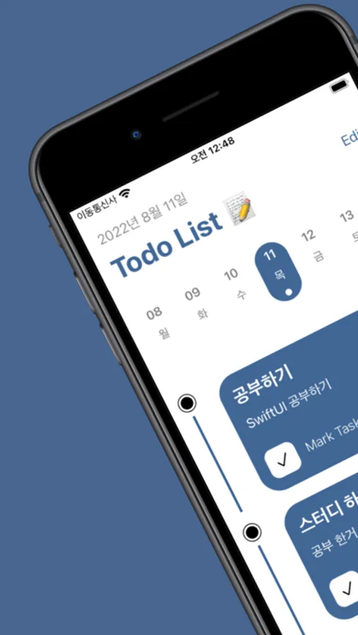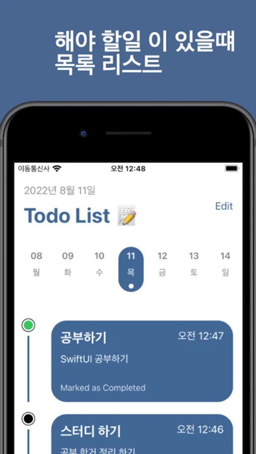 * 완료한일을 완료하면 스와이프해서 삭제할수 있어요