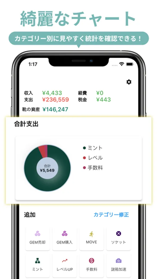 収益をカテゴリーごとに記録・分析できるアプリです!