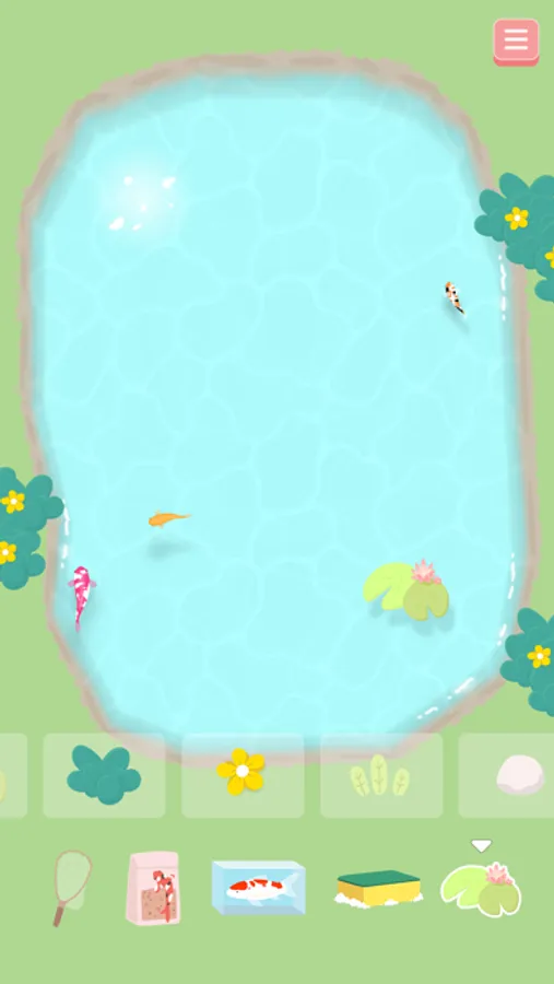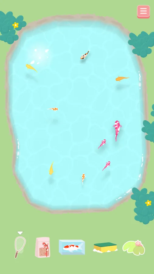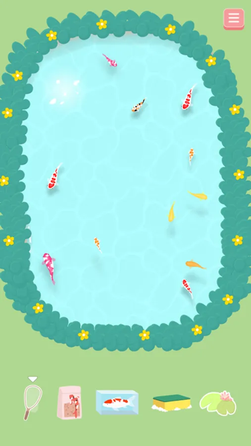 Choose the type of koi fish you want to drop into the pond and watch them grow over time.